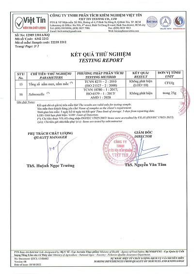 Giấy kiểm nghiệm sản phẩm yến sào